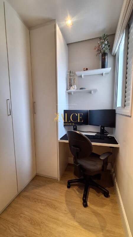 Com 66m² de área útil, o imóvel oferece 3 dormitórios, sendo 1 suíte e um dos quartos transformado em um moderno closet e escritório.