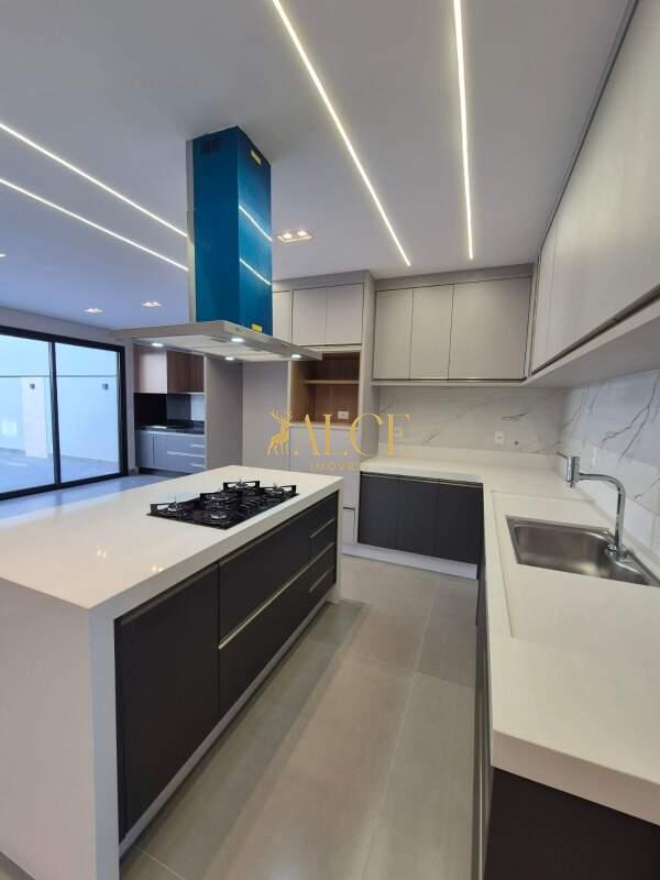 Cozinha com ilha, cooktop, coifa, móveis planejados, torre com forno elétrico e micro-ondas