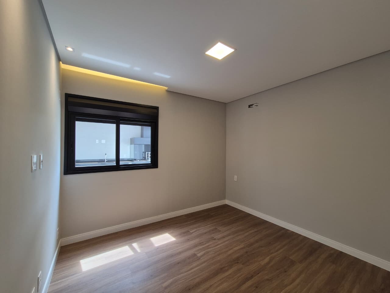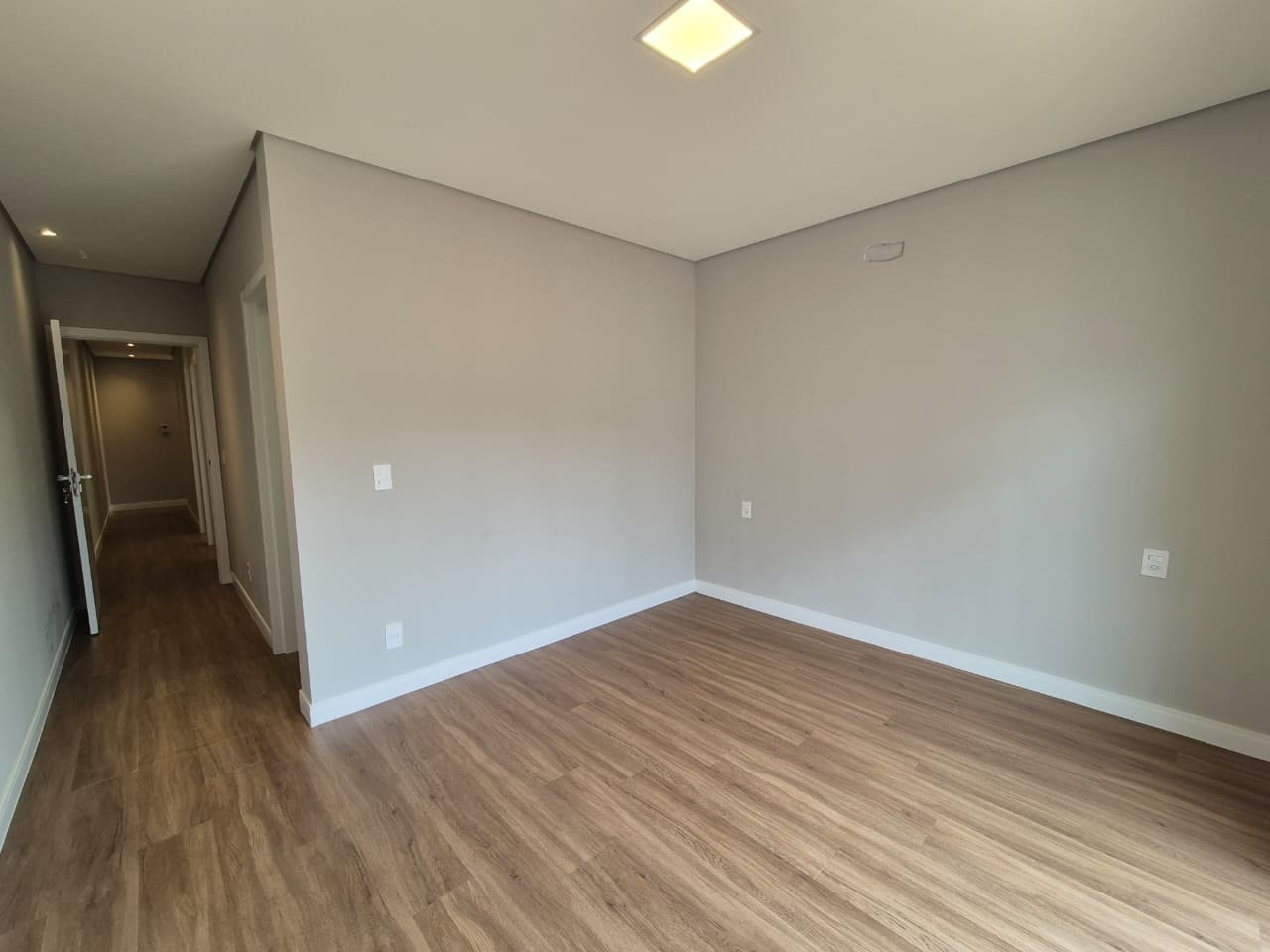 Revestimento em porcelanato 1,20 x 1,20 nas áreas sociais com rodapé embutido