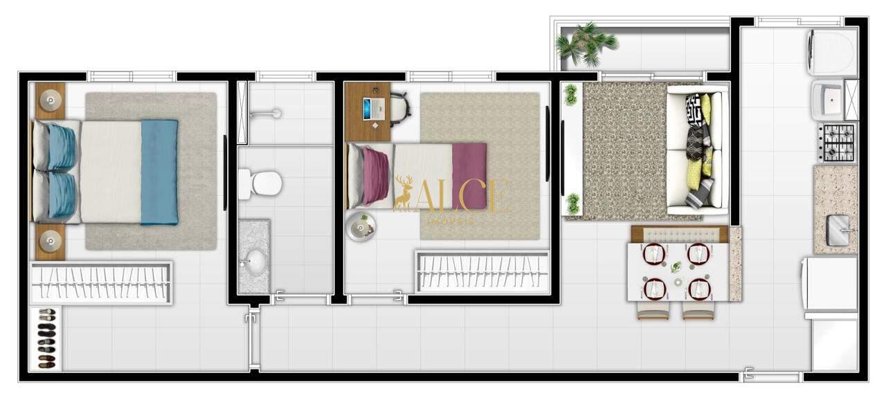 Móveis planejados: na cozinha, banheiro e em um dos quartos