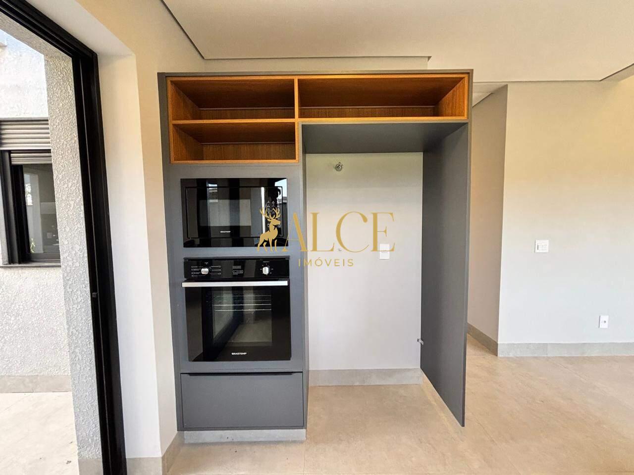 Espaço gourmet completo, com churrasqueira, coifa, cooktop, armários em alumínio, além de previsão para som e TV
