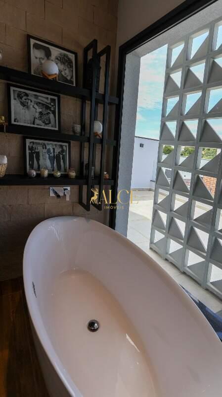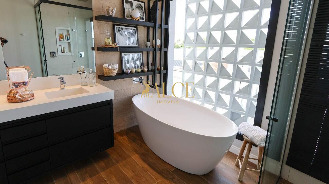 5 banheiros, incluindo suíte master com banheira de imersão, box com chuveiro duplo e cuba dupla
